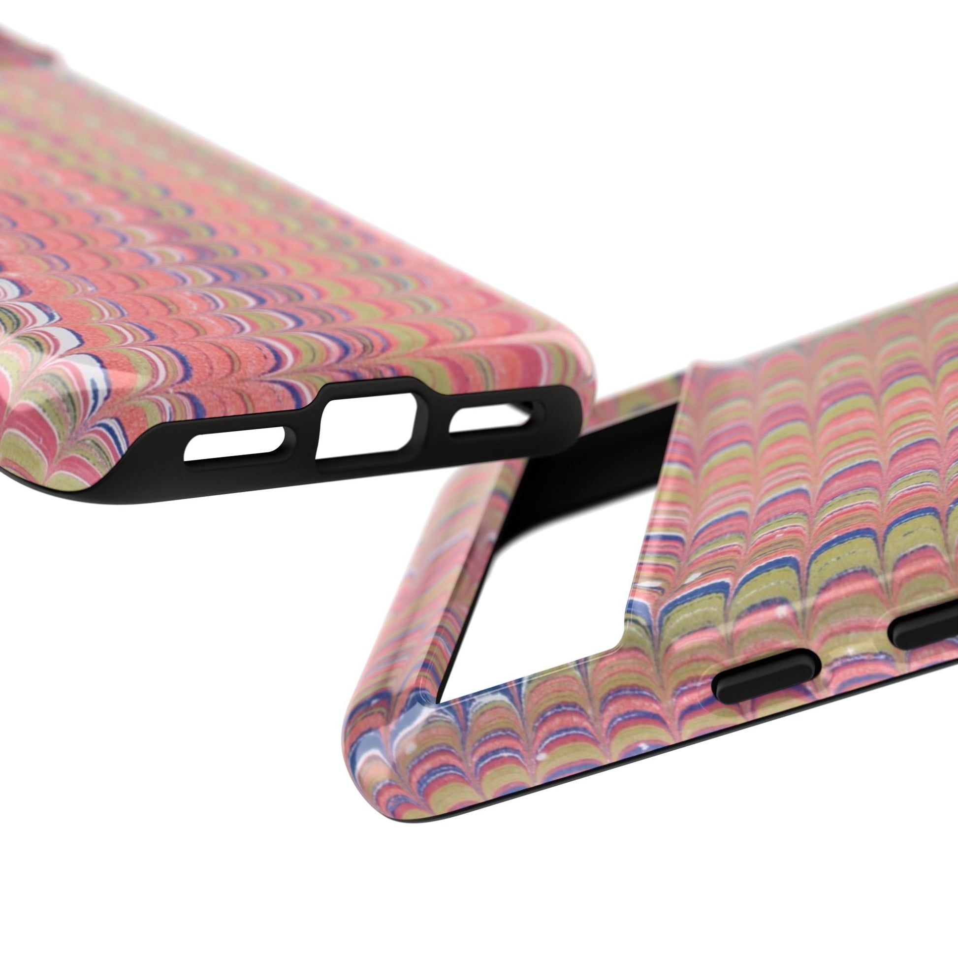 Elegant Vintage Italian Florence Feather Marbled Phone Case – Pink Pastels | Tough Dual-Layer | iPhone 16, Samsung Galaxy, Google Pixel | Glossy or Matte